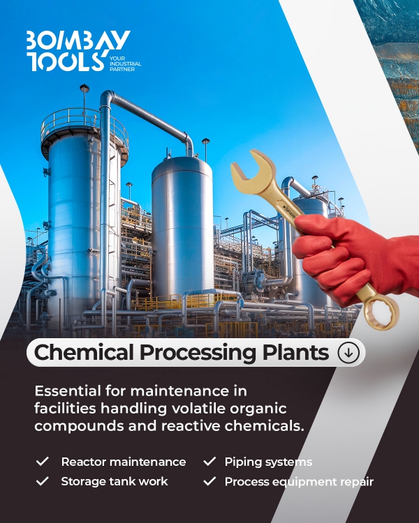 Hand tools are an integral set of tools for any industry. Many industries, including but not limited to Oil & Gas, Chemicals, Pharmaceuticals, Fertilizers, Steel, Automobiles, FMCG, Petrochemical Companies, etc., have their operators performing maintenance or daily operations in specially identified zones within their plant. These zones are identified as hazardous, and operators in these zones should be mandated to use non-sparking tools